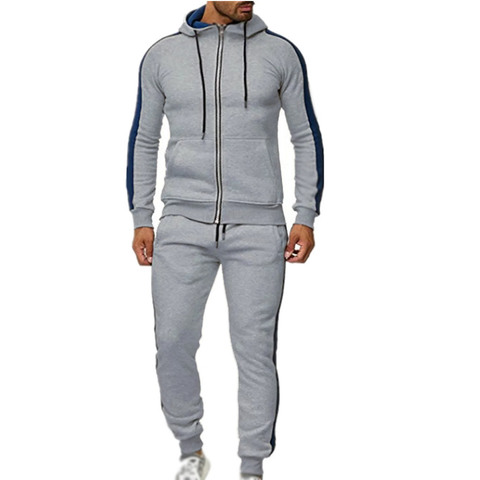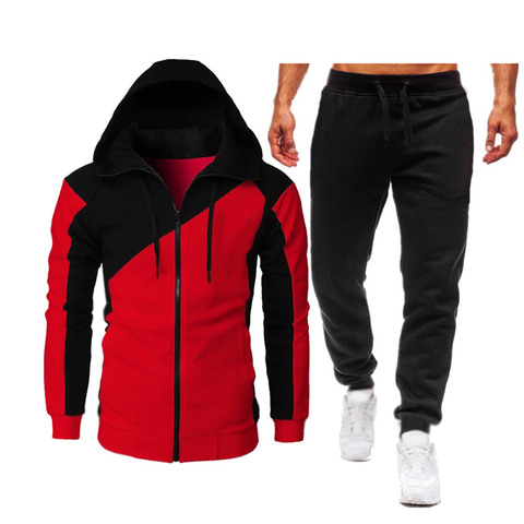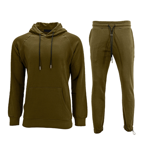 Men Casual 2 Pieces Full Zip Sports Sets Jacket & Pants Active Fitness 100% Cotton Hooded Sweatsuit Set for Men