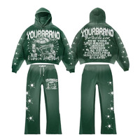 Autumn Winter 100% Cotton Hooded Sweatsuit Set for Men Breathable Heavyweight Outdoor Workout Sports Tracksuits Latest Printed